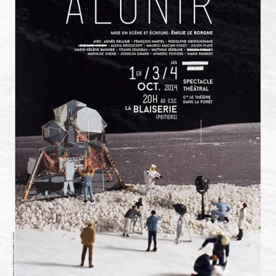 Aboutissement d’un projet de recherche et d’écriture, Alunir se fonde sur la théorie selon laquelle l’Homme n’aurait jamais posé le pied sur la Lune en juillet 1969 et donne à voir ce qu’aurait pu être une journée de tournage en studio de cet exploit ayant fait rêver l’humanité. Loin de chercher à valider cette théorie, l’enjeu du projet est bien plus de questionner la matière dont nos rêves sont faits, au travers d’une figure de réalisateur qui ne sera pas sans rappeler Orson Welles.