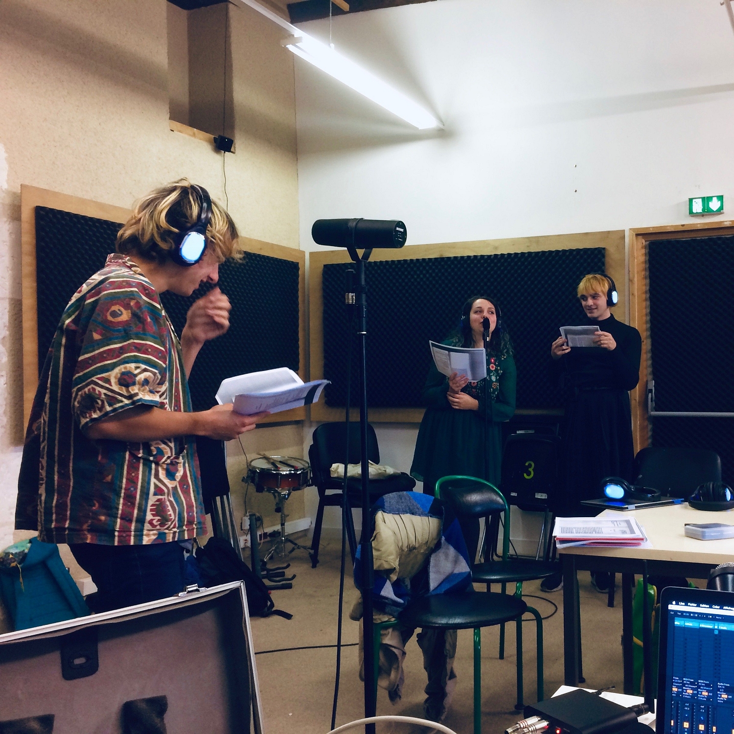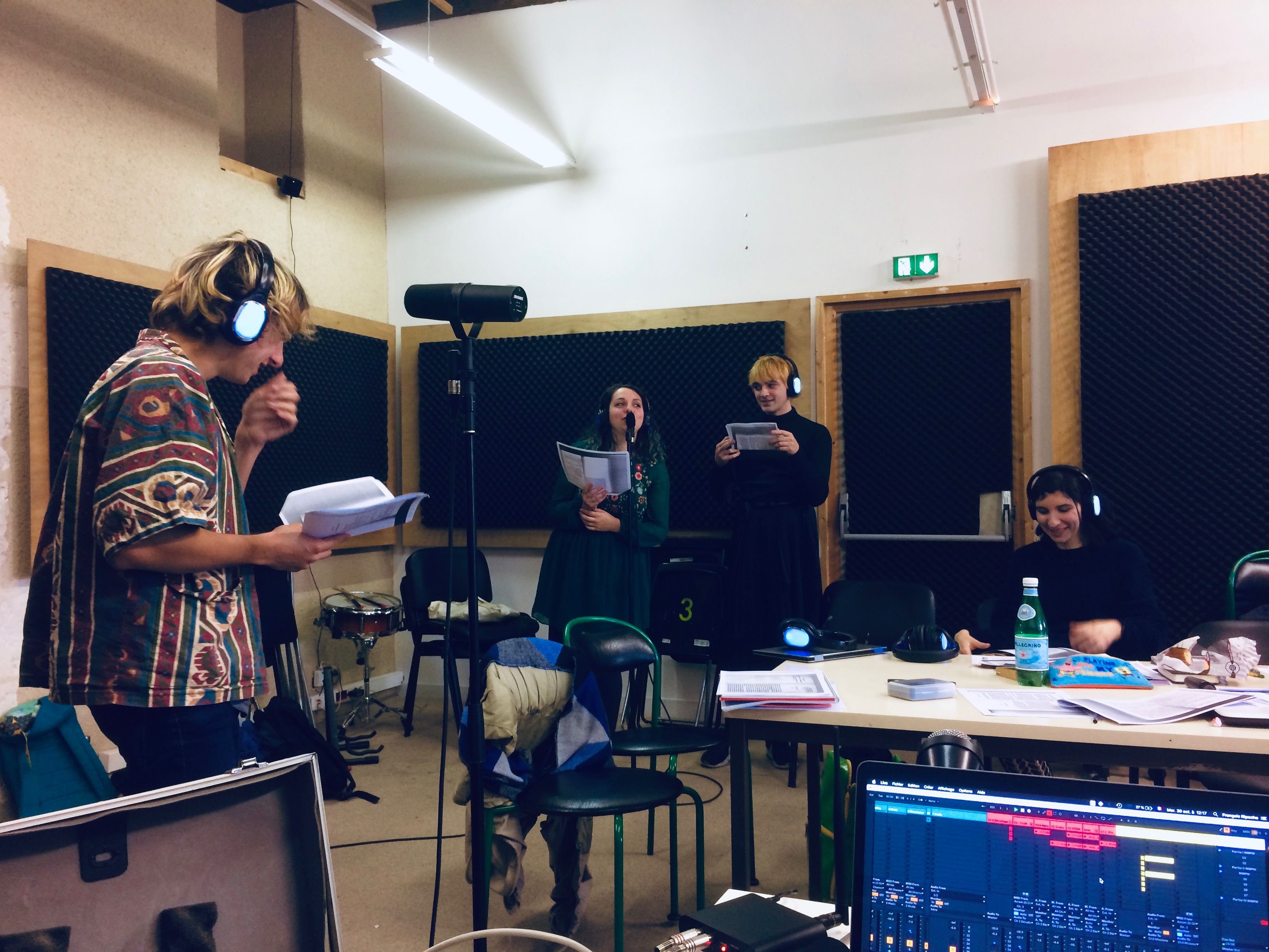Parallèlement, la compagnie intervient auprès des étudiants de l’EESI, qui réalisent quatre stations d’écoute ainsi que l’habillage sonore des textes à partir de sons captés dans différents lieux des quatre communes.