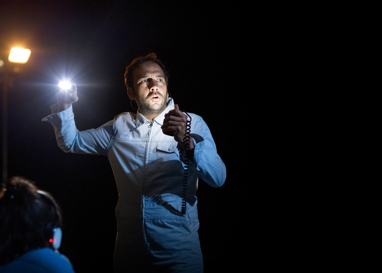 Peu à peu, l’exploration s’incarne : les comédiens quittent la zone centrale pour arpenter l’espace et rejouer la découverte de la planète rouge. L’épopée prend corps, au gré des aléas d’une conquête âpre et violente qui se soldera par la disparition définitive de la civilisation martienne. C’est alors au cinéma que le spectacle emprunte, les comédiens interprétant au plus près des spectateurs, dans un dispositif s’apparentant désormais à un studio de tournage, les personnages de ce récit.