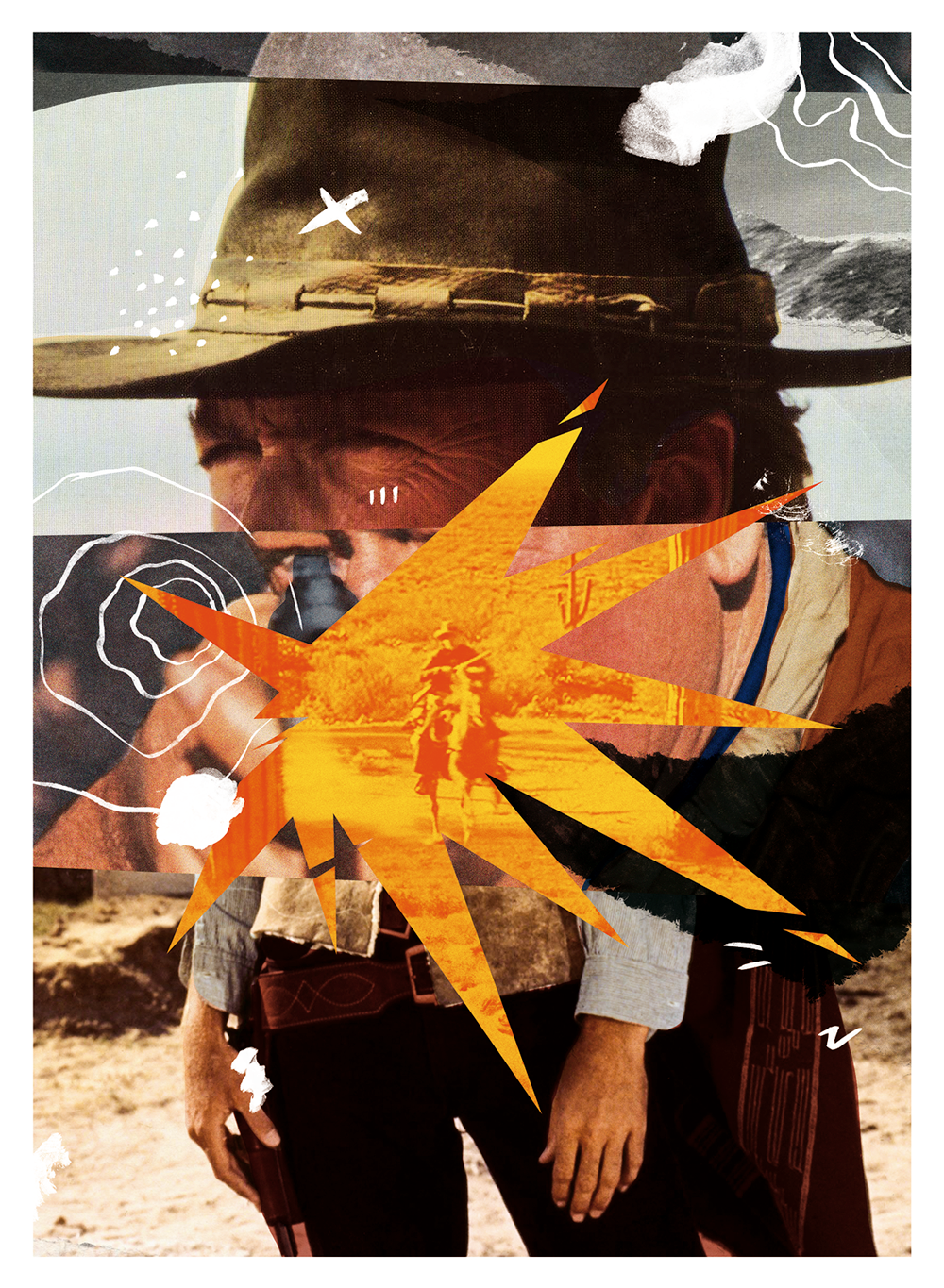 Au cours du spectacle, ils sont deux à s’affronter, deux personnages renvoyant à deux esthétiques cinématographiques distinctes. Le premier est à l’image des héros de Ford – le cinéma de John Ford incarnant par excellence le western à son âge classique, proposant un univers manichéen dans lequel le héros sera toujours juste, intègre, bon ; le second, inspiré des personnages de westerns spaghettis de Sergio Leone, offre un profil plus trouble et moins idéalisé. La rencontre de ces deux personnages provoque sur eux la sensation d’être face à un miroir déformant : confrontation perturbante, tantôt pathétique, tantôt comique, qui contribue à mettre ces personnages face à leur caractère fictifs.
