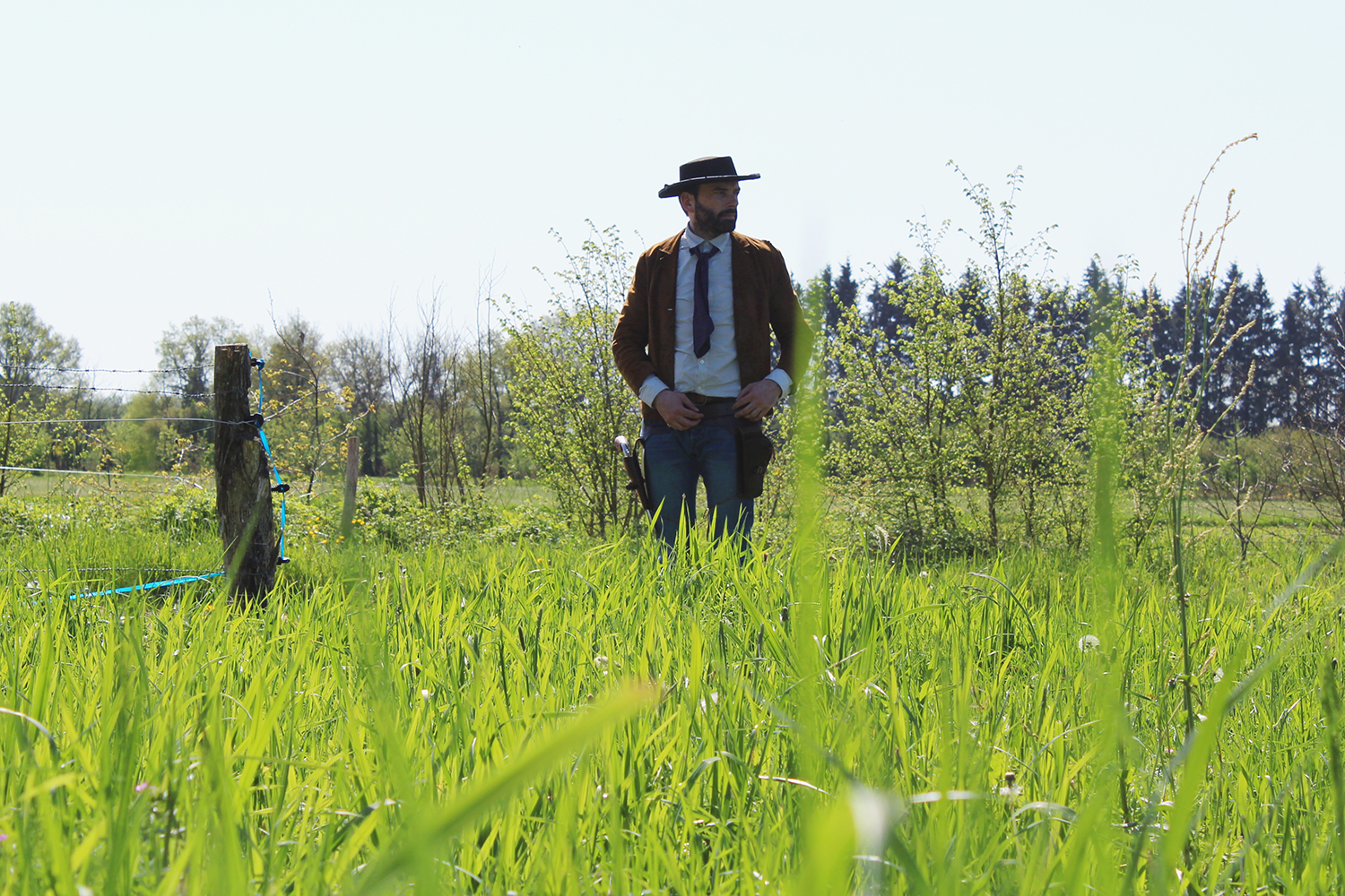 La figure du cowboy, ici, apparait en pleine crise identitaire. En tension entre ce qu’il est censé représenter et ce qu’il est réellement, ce cowboy contemporain peine à prendre lui même son rôle au sérieux.