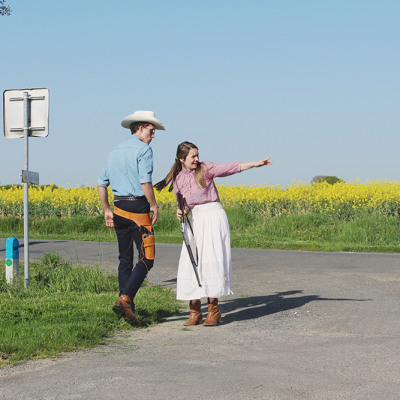 Dans ce spectacle, le paysage quotidien des spectateurs se transforme en un décor de cinéma à taille réelle dans lequel se déploient des tableaux théâtraux librement inspirés des mythes du Grand Ouest américain, mettant en scène l’affrontement de deux cow-boys se mesurant l’un à l’autre au travers de différentes épreuves emblématiques du genre.